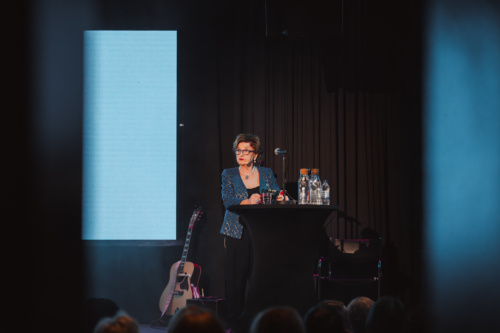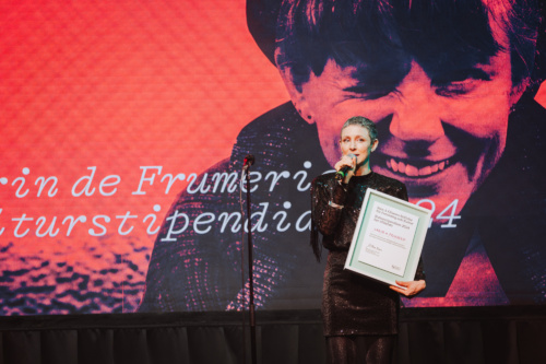 Först på scen var 2024 års kulturstipendiat skådespelaren Karin de Frumerie som presenterades av Stadsteaterns konstnärliga ledare Linda Zachrison.
