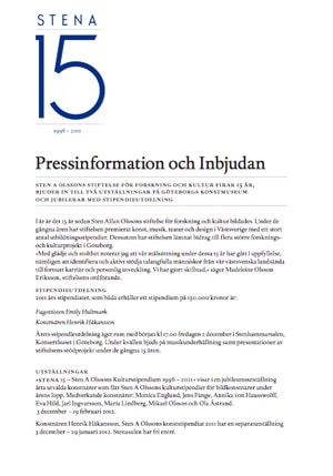 Pressinformation och inbjudan Stenastiftelsen 15 år